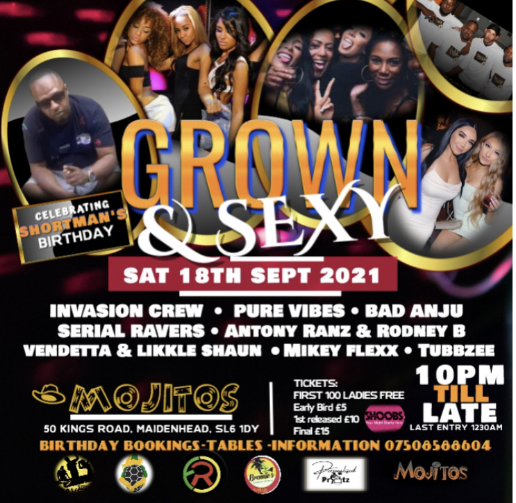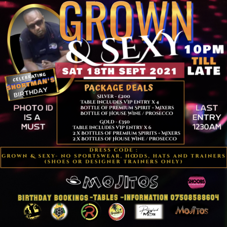 S.R. PR presents.... GROWN & SEXY Celebrating Shortman's Birthday SAT 18th SEPTEMBER 2021 The Year to Year birthday splash for Shortman! Entertaining on the night will be provided by:...